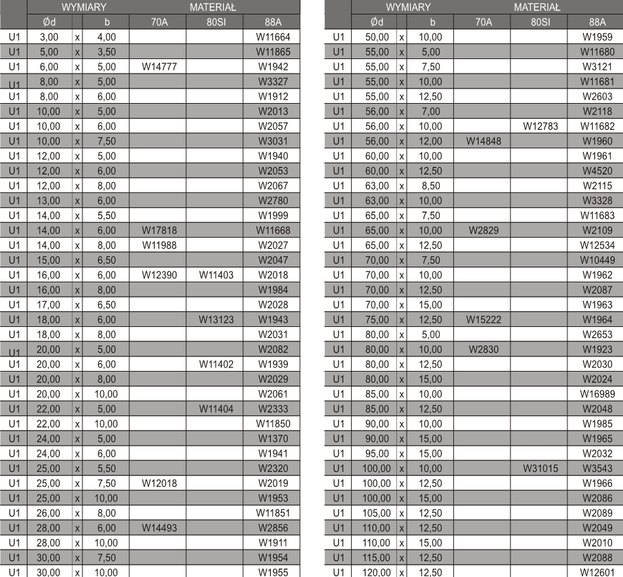 Uszczelki typu U to elastomerowe pierścienie uszczelniające o przekroju w kształcie litery "U", stosowane przede wszystkim w układach hydraulicznych i pneumatycznych. Dzięki swojej konstrukcji zapewniają doskonałe parametry uszczelniające zarówno w ruchu posuwisto-zwrotnym, jak i w aplikacjach statycznych.