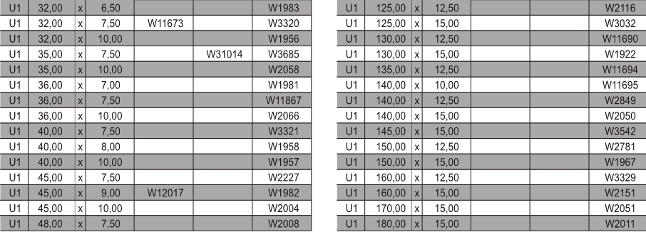 szeroka gama wymiarów i profili dostosowanych do różnych warunków pracy,