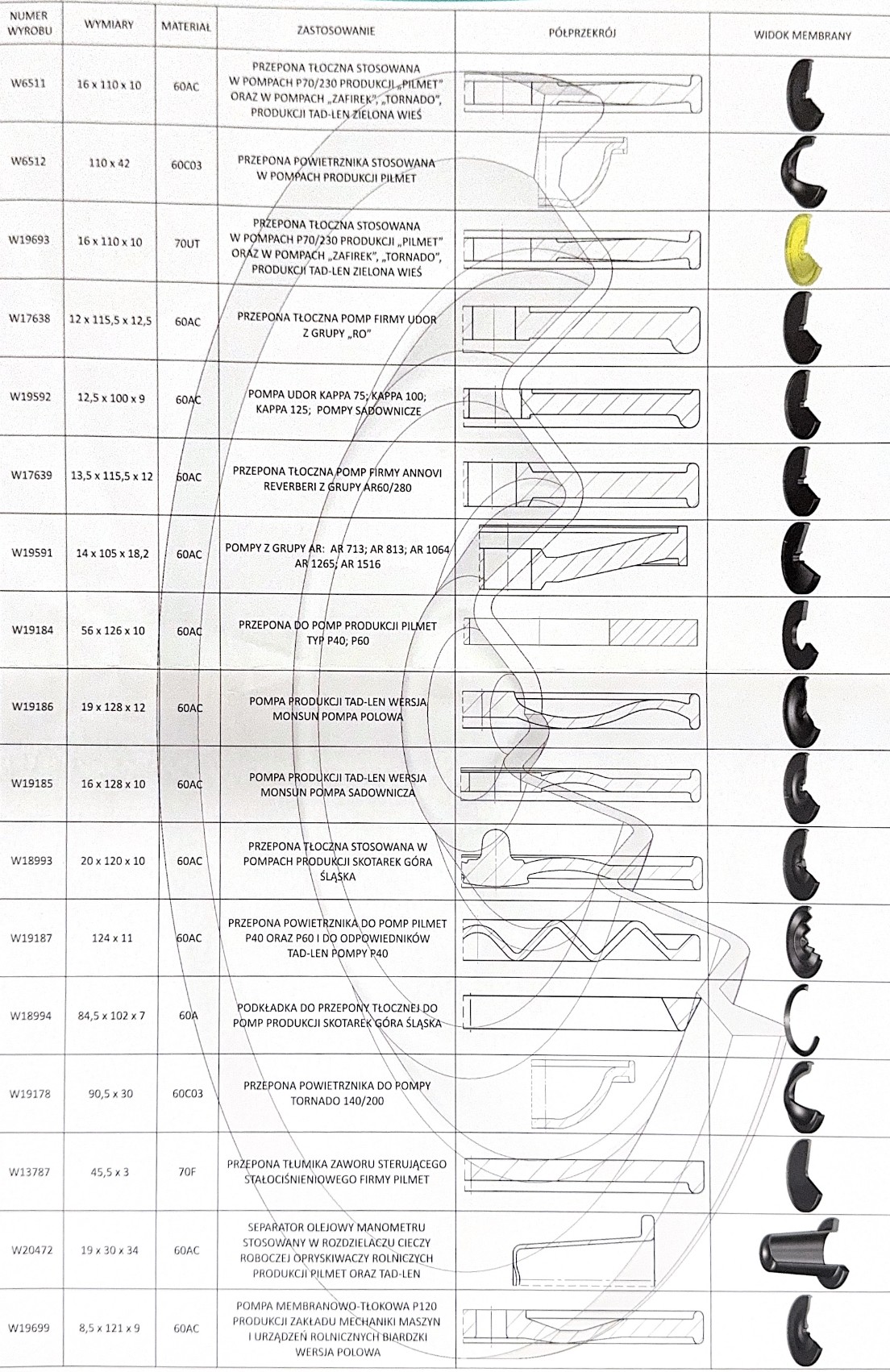 Posiadamy w sprzedaży wszystkie membrany z poniższej grafiki.