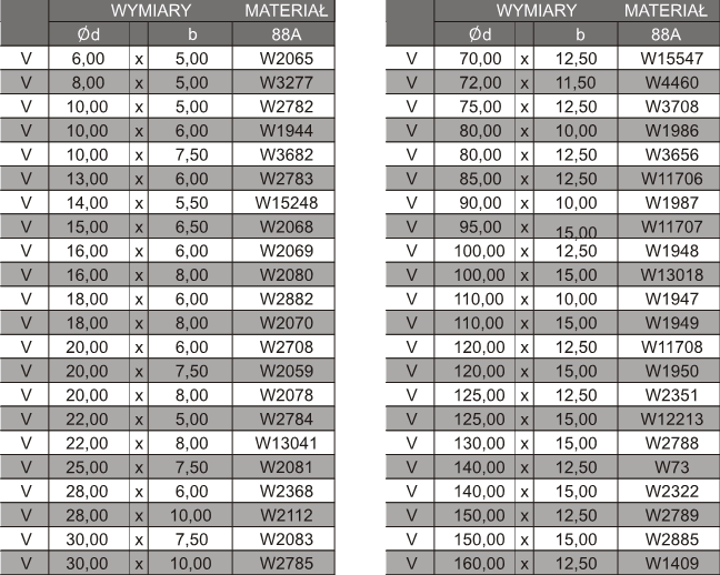 szeroka gama wymiarów i profili dostosowanych do różnych warunków pracy.